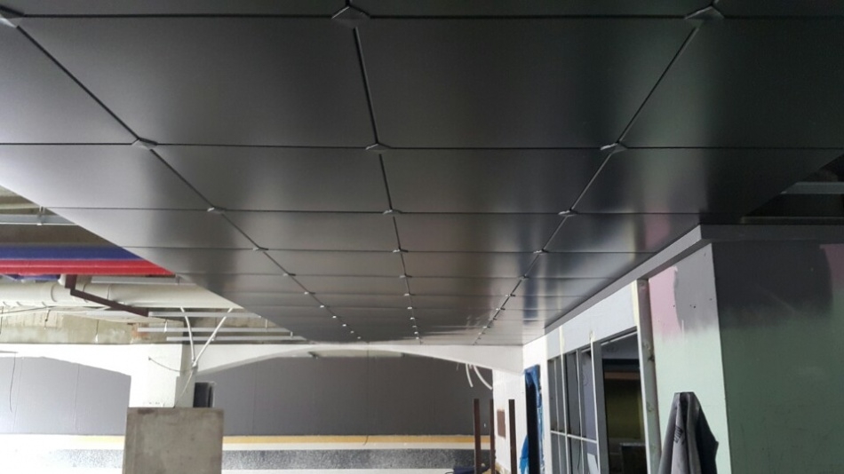 주차장 천정을 단파타일 SMC,DMC 블랙색상으로 시공하여 고급스럽고 세련됨을 더했습니다