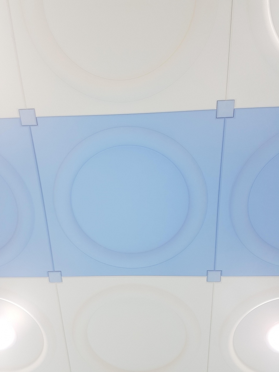 떨어지지 않도록 파란색 사각 클립톤으로 보강시공하여 견고함과 밝고 경쾌한 분위기로 시공하였습니다