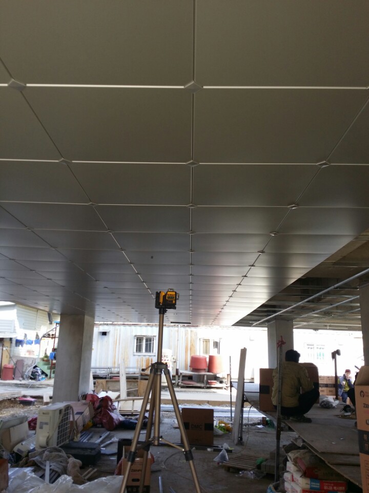 주차장 천정 케높이에 금속천정제 DMC 평판으로 시공 후 바람에 강한 장점이 더하여진 캡용으로 보강하였습니다