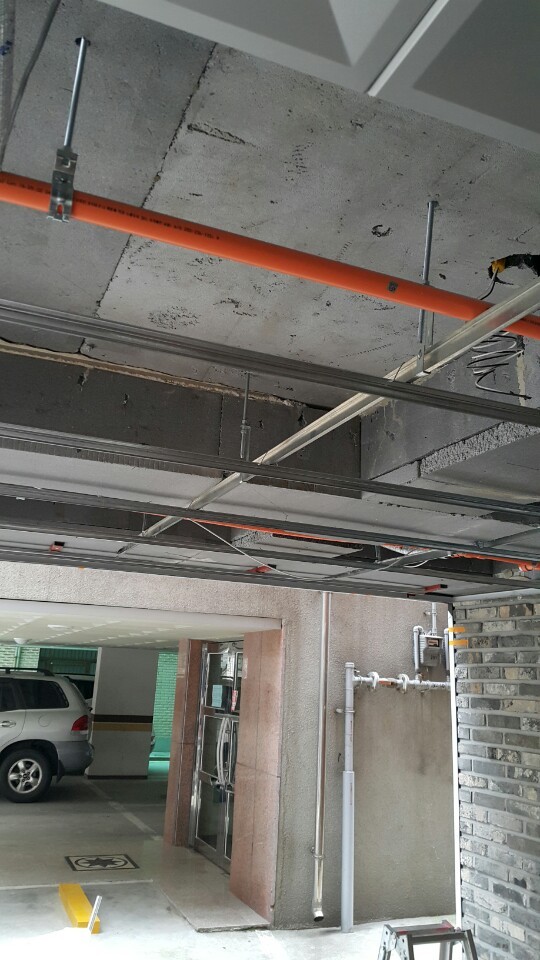 송파 문정동 빌라 주차장 천정 공사 준불연금속천정제 DMC 보강캡용 사진입니다
