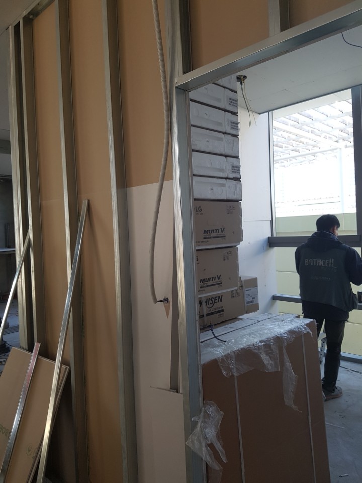 인천 연수구 송도 오피스텔 상가 스터드칸막이, 천정 석고 커텐박스 시공 사진입니다