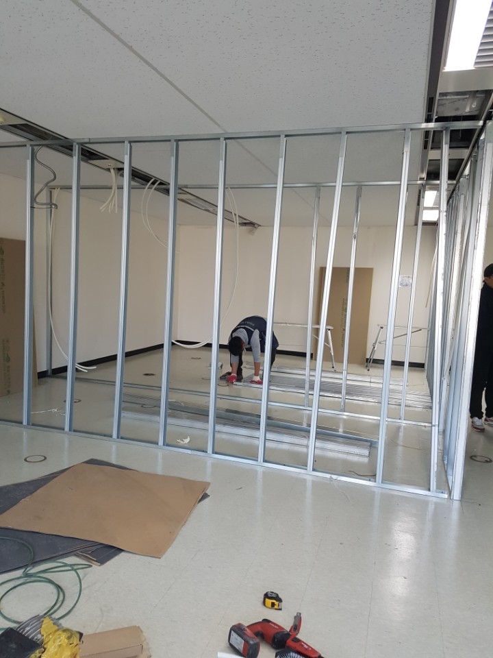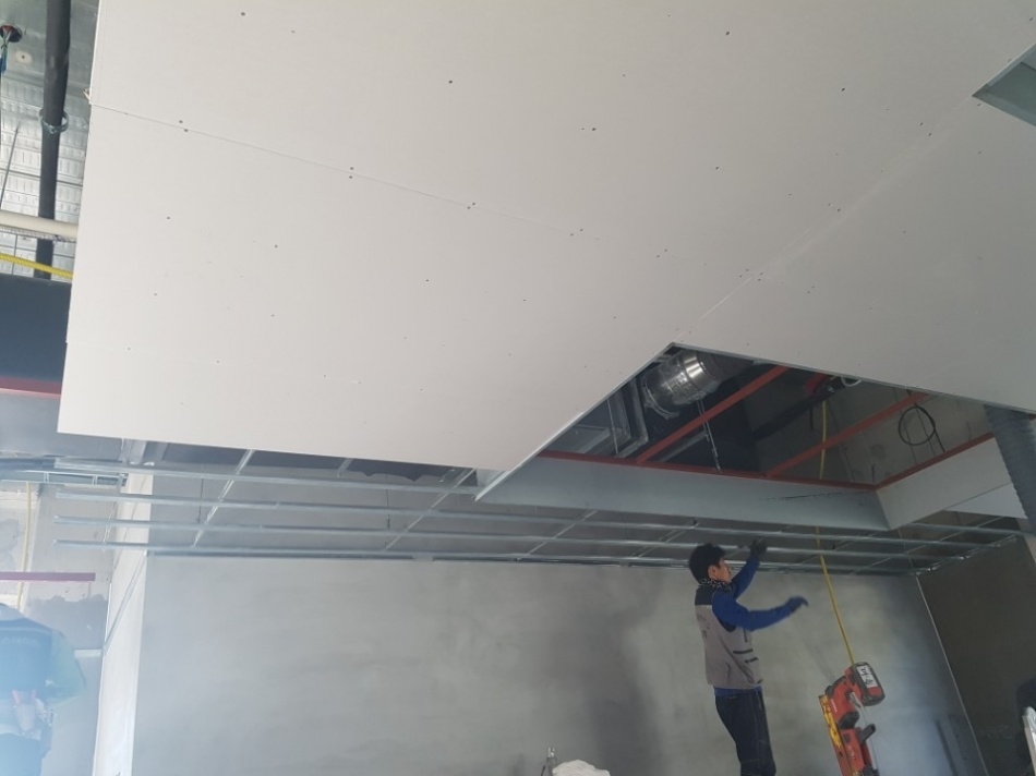 인천 연수구 송도 오피스텔 상가 스터드칸막이 , 천정 석고 커텐박스 시공 사진(서울/송파/방이동/가락동/경기/성남/광주/용인/수원/안양 주차장 천정 & 칸막이)